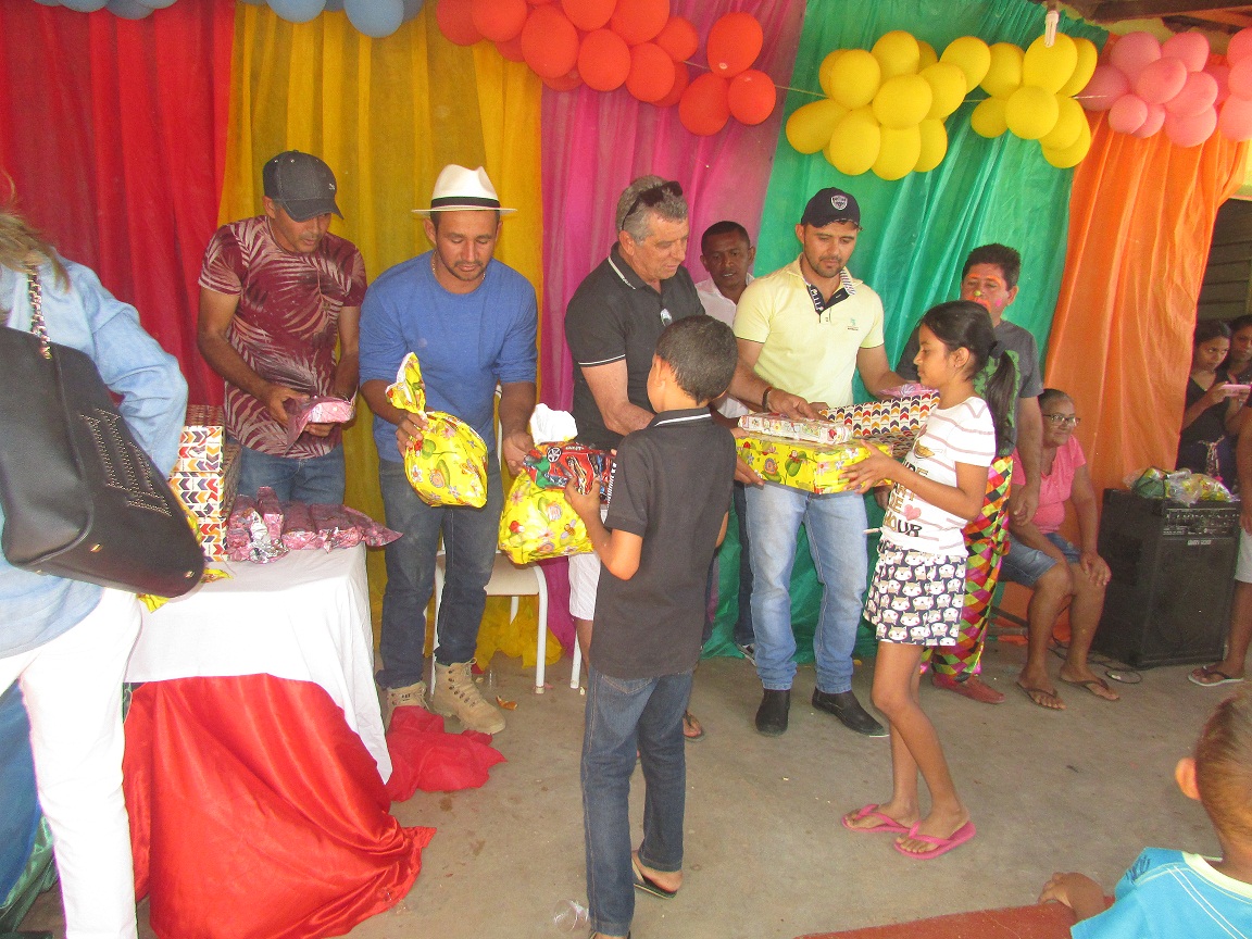 Esta ação é desenvolvida há vários anos e conta com a colaboração da comunidade local e do Governo Municipal. E neste ano teve a colaboração especial do empresário Jorge, que fez a doação dos brinquedos e das cestas básicas.