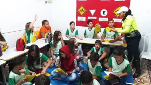 Entre os assuntos abordados estão: os perigos e os cuidados no trânsito; a segurança da criança no trânsito; prevenção da violência e dos acidentes de trânsito; e a importância dos equipamentos de segurança no trânsito.