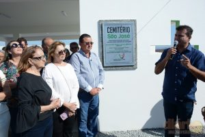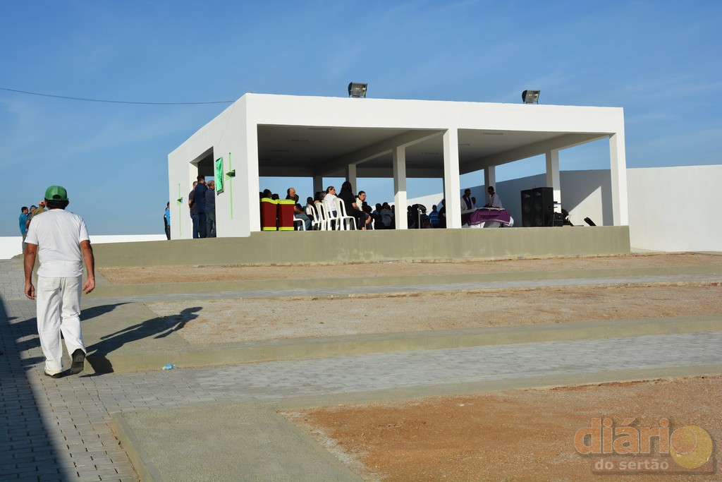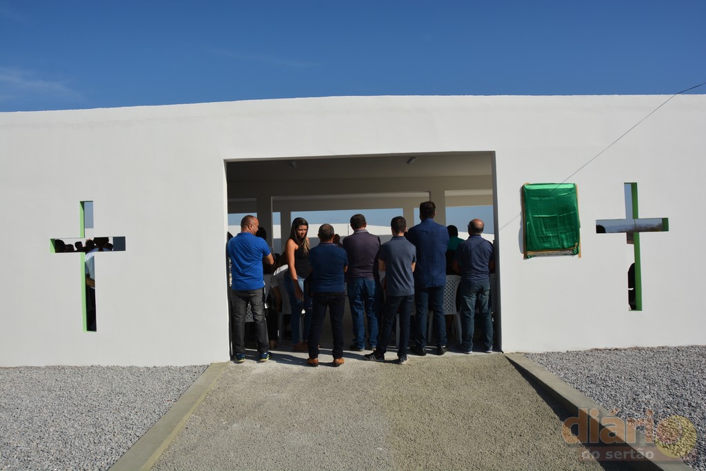 Após a benção do padre nas instalações do novo cemitério, o prefeito Emannuel Messias (PSD) inaugurou e ressaltou a importância da obra, pioneira no Alto Sertão.