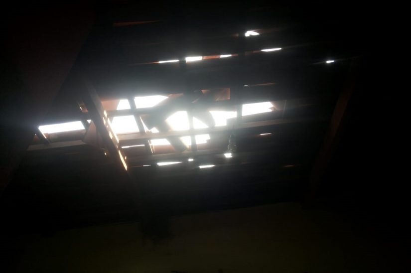 Segundo informações do filho da proprietária, o prejuízo foi grande, pois as telhas foram quebradas.