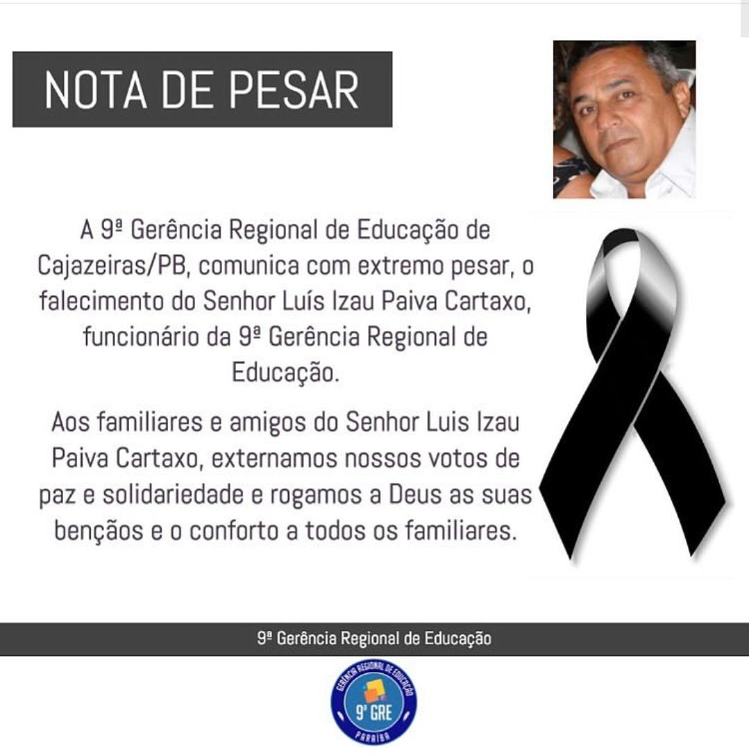 Faleceu no Hospital Regional de Cajazeiras nesse domingo (24), o servidor público do Governo da Paraíba, Luiz Izau Paiva Cartaxo, mais conhecido como Luiz de Eutrópio.