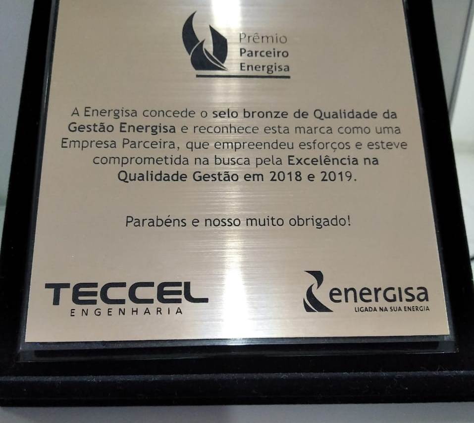 Junto ao selo de melhores empresas para se trabalhar, a Teccel também ganhou o Prêmio Parceiro Energisa com o selo de Qualidade em Gestão, onde empreendeu esforços e esteve comprometida na busca de excelência na Qualidade em Gestão 2018-2019, mostrando mais uma vez sua força e comprometimento com todas as partes interessadas no seu negócio.