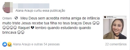 As declarações são diversas, umas se despedem de Josefa Raquel de Sousa, de 25 anos de idade e Dassayev Alves Mariz, de 31 anos de idade, outras se dizem sem acreditar com as partidas prematuras.