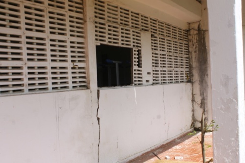 A Escola Estadual José Duarte Filho apresenta risco em sua estrutura física, com rachaduras em paredes, infiltração e o muro que caiu. A escola que tem mais de 600 alunos está funcionando em local inadequado.