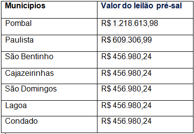 Prefeituras da região de Pombal receberam mais de R$4 milhões pela última cessão onerosa do pré-sal