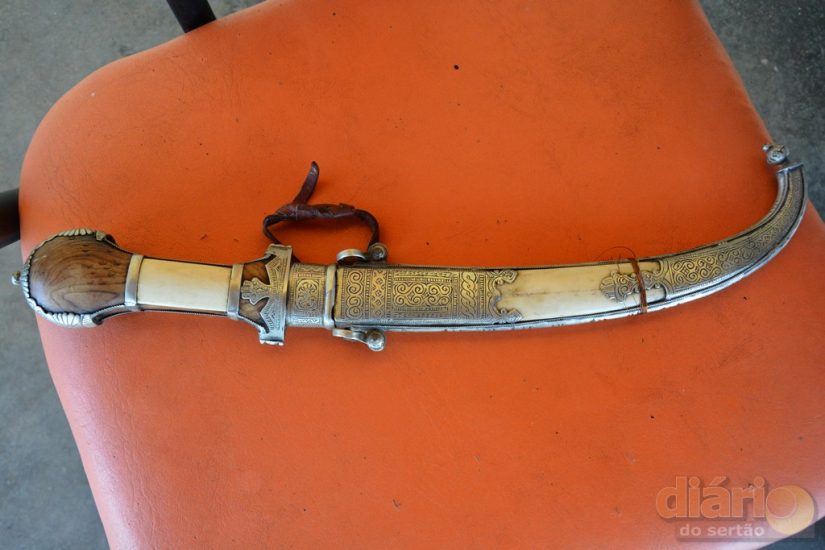 Também chama atenção um belo punhal de prata, osso e metal que ele possui e diz que foi dado de presente por um genro que ‘trouxe’ de um museu de São Paulo. Zé Pereira acha que a peça remonta dos tempos de Dom Pedro (não especificou qual) e foi usada por donos de escravos.