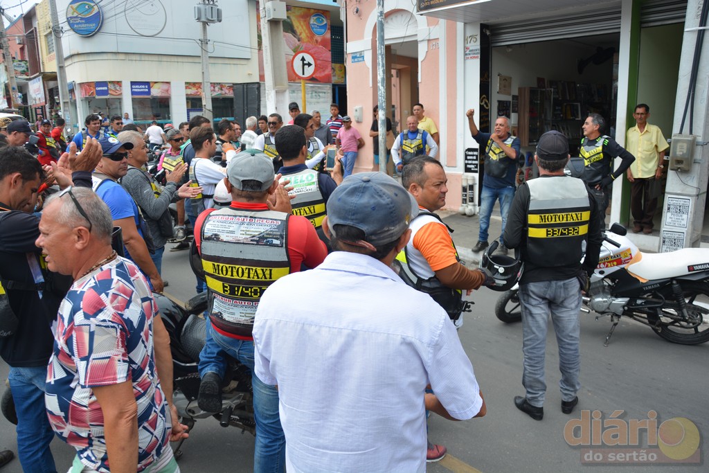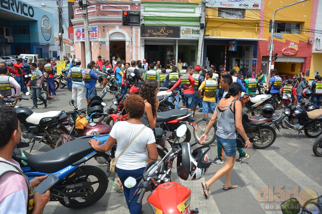 Liderados pelo sindicato local, dezenas de mototaxistas realizaram um ato público chamando atenção da população e das autoridades policiais