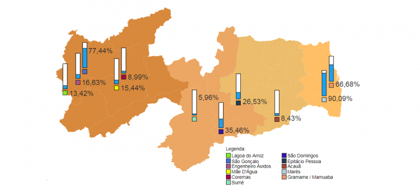 De acordo com a análise realizada pelo Diário do Sertão a capacidade dos cinco maiores açudes é superior em comparação com o ano de 2019