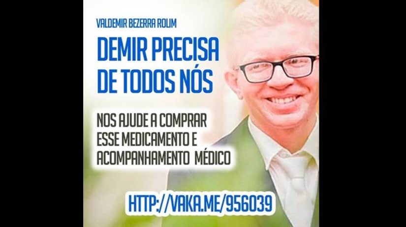 A família lançou a 'vakinha online' para realizar o tratamento de saúde de Valdemir Rolim pois o Sistema Único de Saúde não disponibiliza o medicamento e nem o tratamento mais indicado.