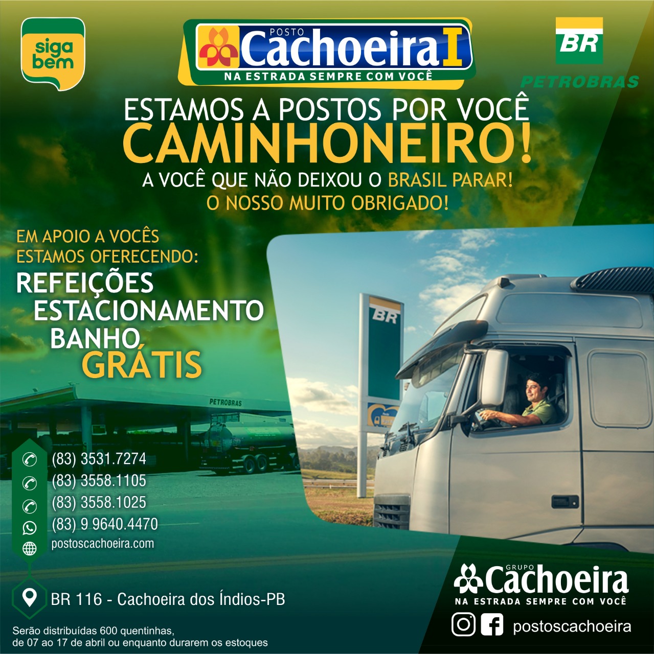 O posto de combustíveis Cachoeira I, localizado no quilômetro 432 da BR 116 na cidade de Cachoeira dos Índios, iniciou nesta Semana Santa a campanha ‘Parada Solidária’, que tem como principal objetivo, apoiar os caminhoneiros que mesmo diante da pandemia do novo coronavírus, seguem viajando pelo Brasil garantindo o abastecimento das cidades.