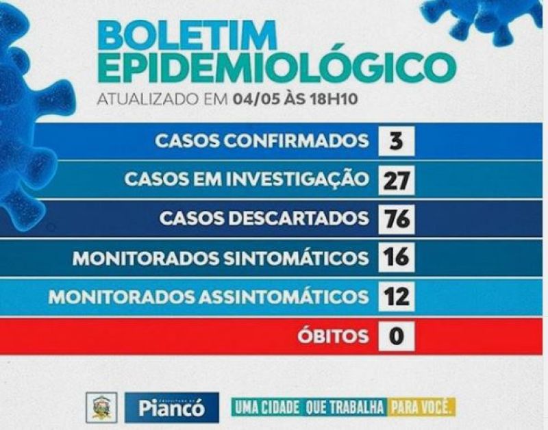 A cidade de Piancó, na região do Vale do Piancó, registrou seu terceiro caso confirmado de Coronavírus.