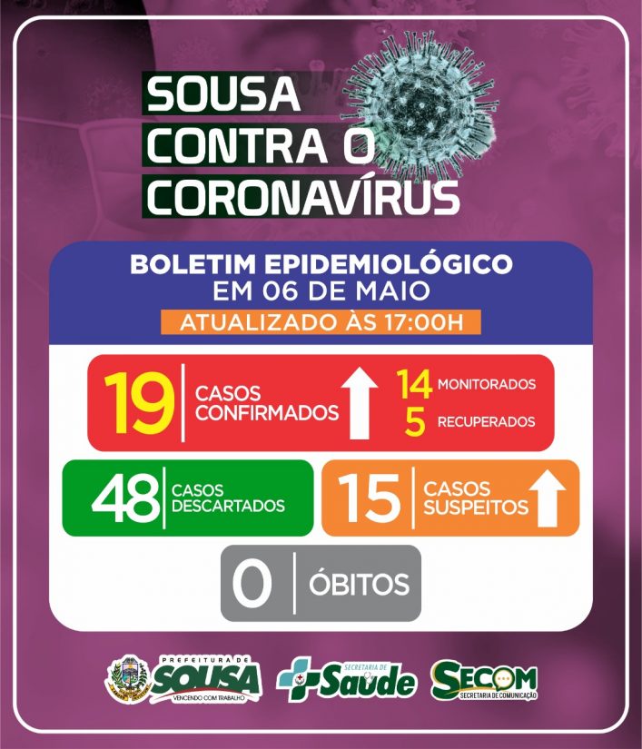 Boletim atualizado de casos de Covid-19 em Sousa, 06/05/2020