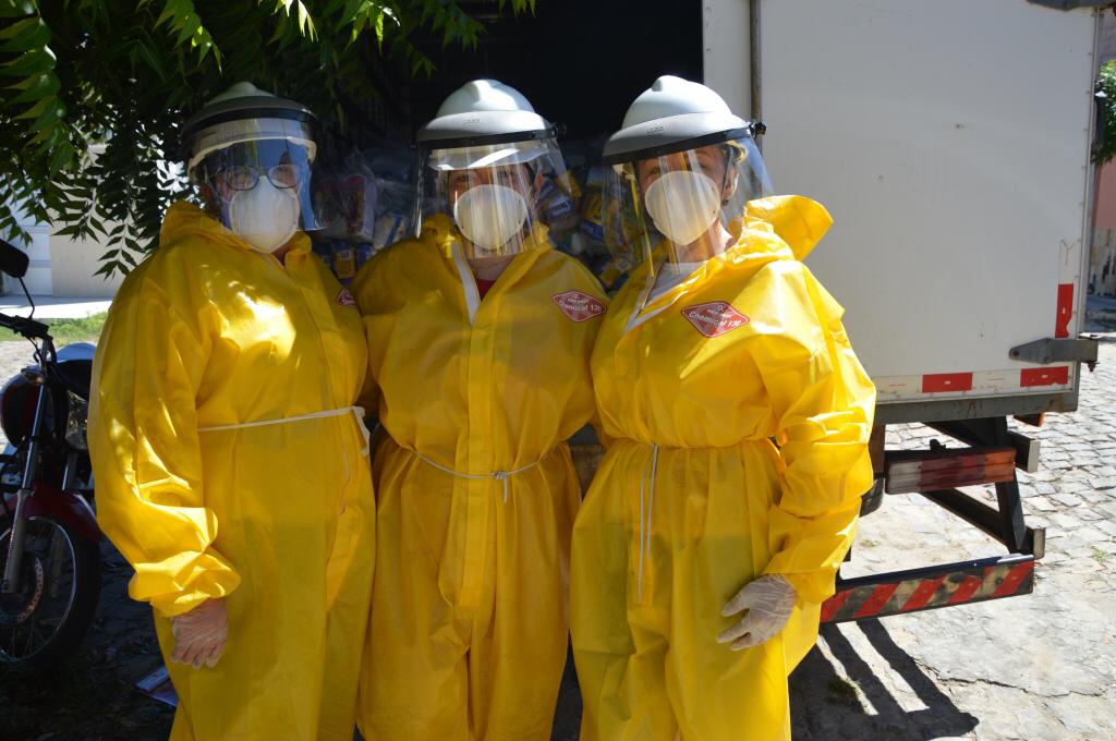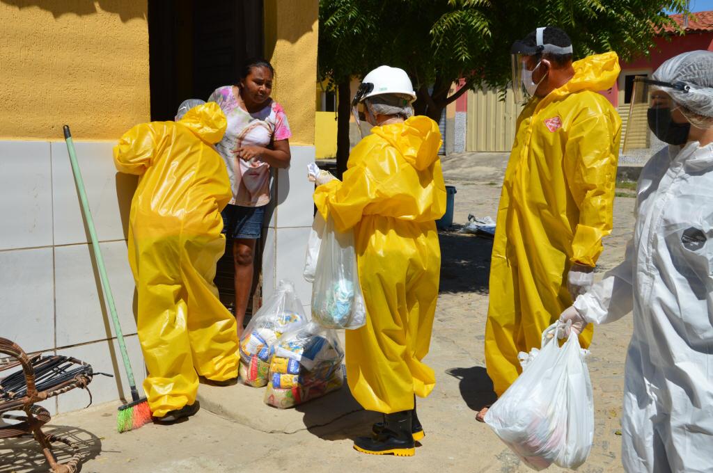 Devidamente equipados, funcionários realizaram a distribuição em São José de Piranhas