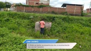 Na rua Luiz Alves Pessoa, no Loteamento Cristal 1, Zona Norte da cidade, o repórter Henrique Nogueira mostrou um terreno baldio tomado pelo matagal, além de lixo nas esquinas e esgotos a céu aberto.