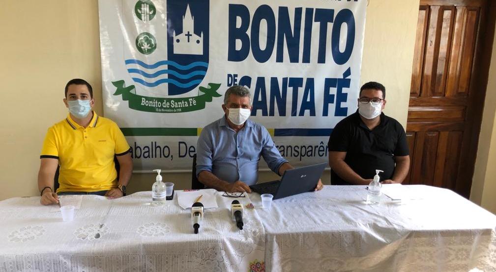 O prefeito de Bonito de Santa Fé, Chico Pereira, realizou uma coletiva de imprensa com o portal Diário do Sertão e o Radar Sertanejo para apresentar os protocolos adotados pela Prefeitura, através da Secretaria de Saúde, para prevenção da Covid-19 e fazer um balanço das ações da saúde no município.