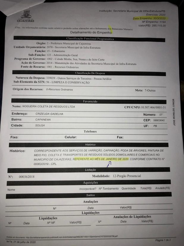 O pré-candidato a prefeito de Cajazeiras, Marquinhos Campos, denunciou a gestão do prefeito José Aldemir de estar utilizando os recursos da Covid-19 para outras finalidades não autorizadas.