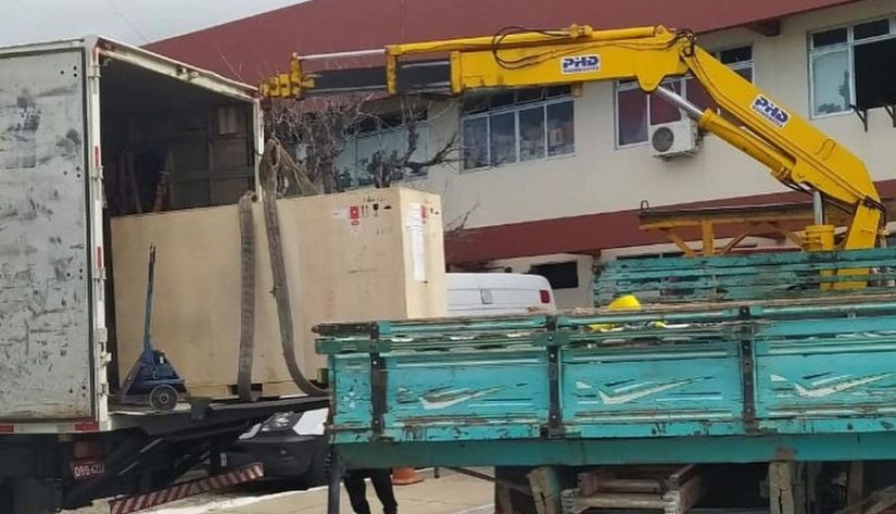 Dessa vez o equipamento é um dos mais aguardados dos últimos anos naquela unidade hospitalar. Trata-se de um tomógrafo novo e moderno, que já foi descarregado no HRC e agora aguarda montagem.