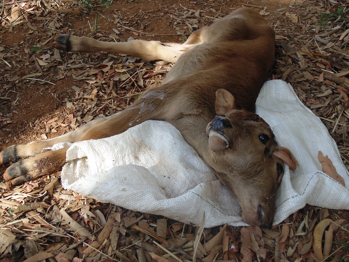 Apesar do animal ter nascido com vida, ele não consegue se alimentar, pois o leite que é colocado em uma das bocas do bezerro, com a ajuda de uma mamadeira, cai por a outra cavidade bucal.