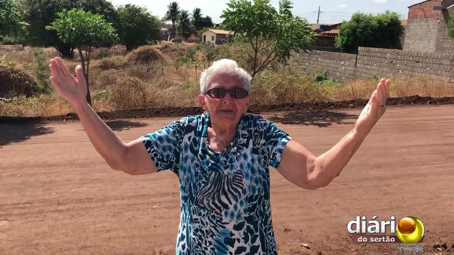 Ao ver o maquinário trabalhando na obra, a aposentada Antônia César saiu de casa e, emocionada, comemorou a chegada da estrada em Melancias.