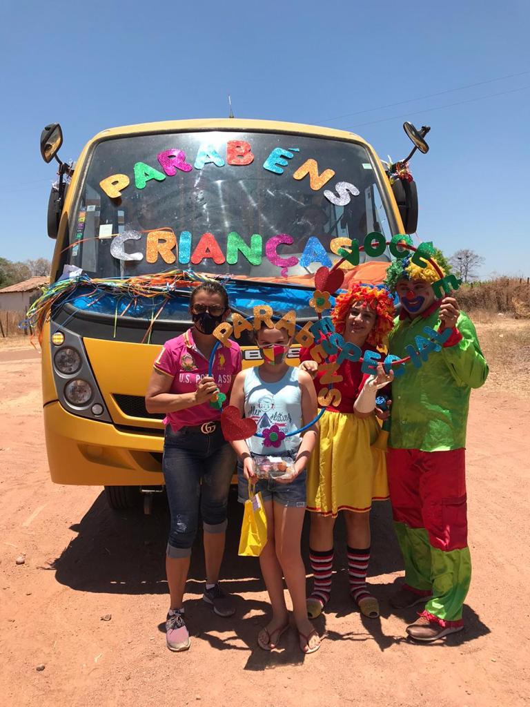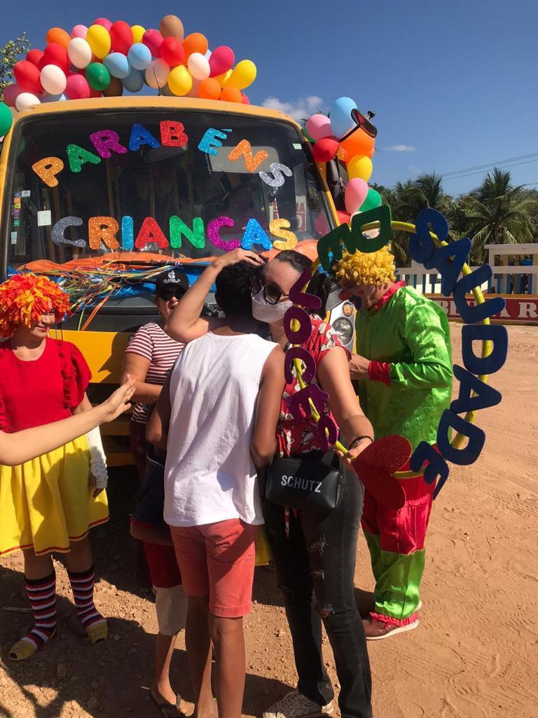 Os profissionais da educação enfeitaram um ônibus escolar e saíram em busca dos 106 alunos da escola para que todos pudessem matar a saudade, já que há quase sete meses as aulas deixaram de ser presenciais e se tornaram à distância.