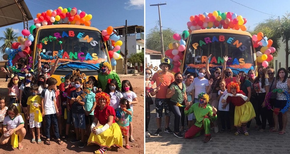 Professores e servidores da Escola Tiburtino Veríssimo Dantas, no distrito de Várzea da Ema, em Santa Helena, no Sertão paraibano, inovaram na comemoração do Dia das Crianças neste ano.