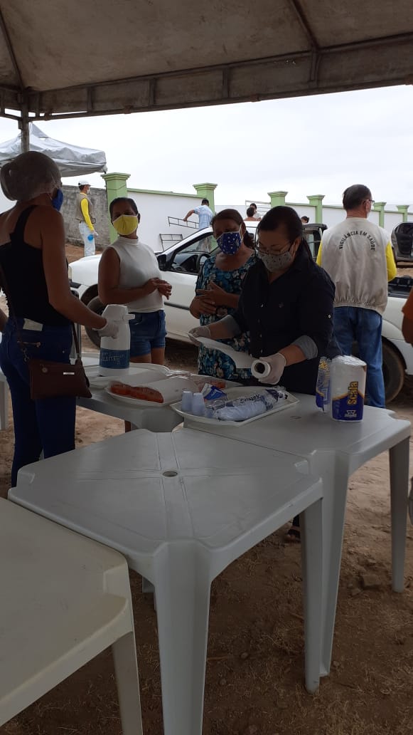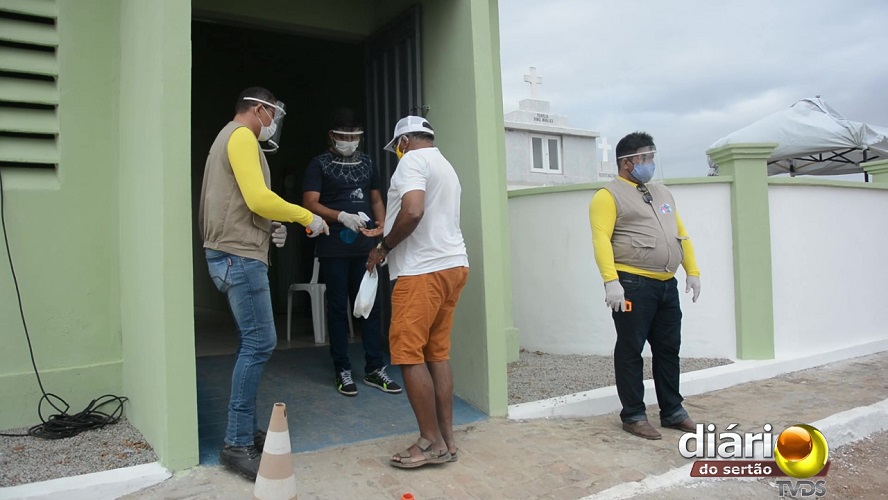 A Secretaria de Saúde do município montou na parte externa ações de mobilização contra a Covid-19 que permitiram a reabertura do campo santo com segurança