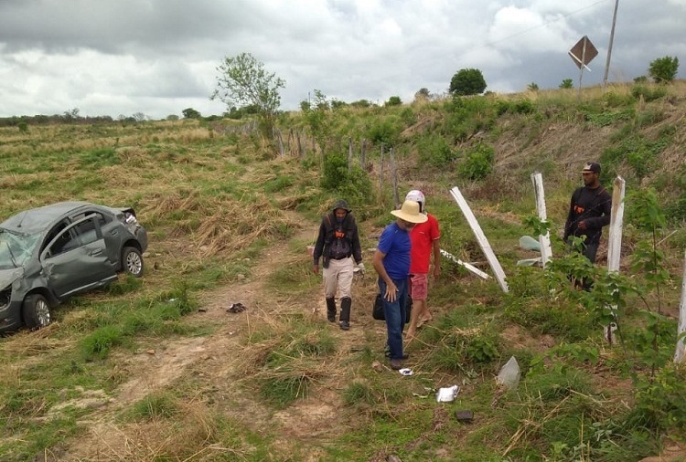 Após passar em uma ponte e entrar em uma curva no sítio Pereiros, o padre tentou desviar de um cachorro e acabou capotando o carro por três vezes seguidas.
