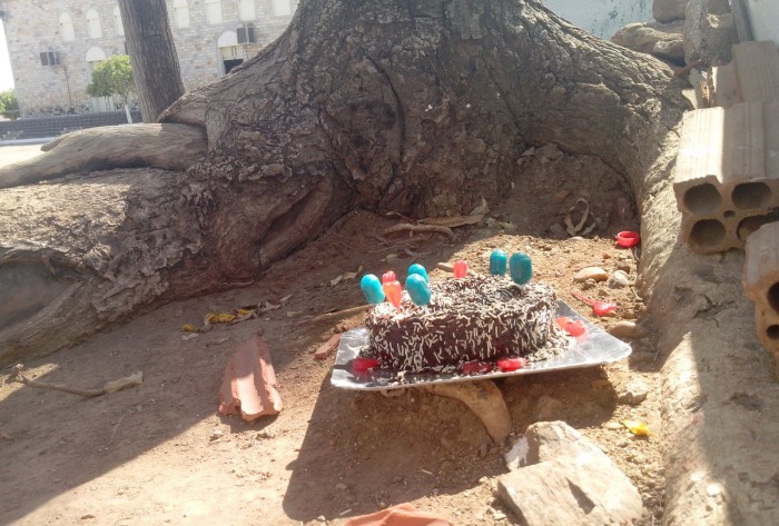 O despacho foi encontrado por curiosos que passavam no local e estudantes da escola Bento Freire, que fica em frente a Igreja embaixo de uma árvore. Nela havia um bolo em uma bandeija, doces e pirulitos espetados.