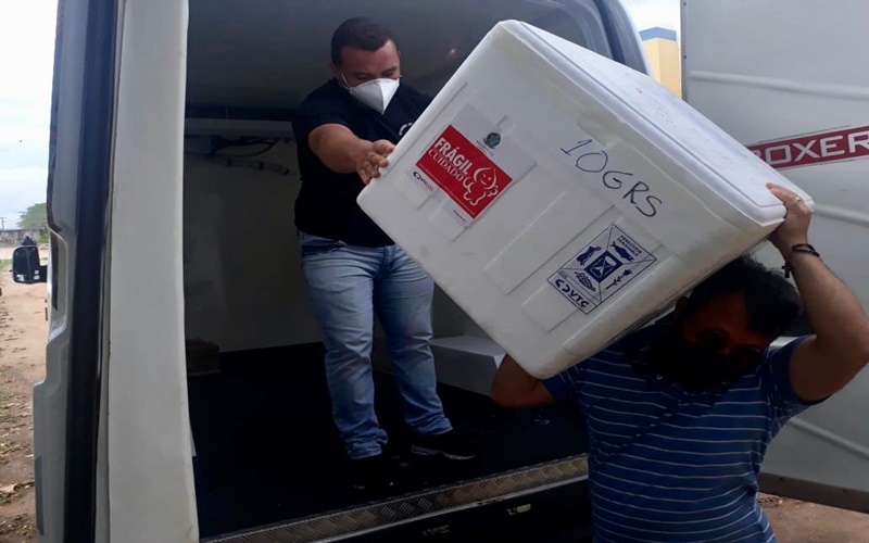 As vacinas contra a Covid-19 chegaram nesta terça-feira (19) em Sousa, no Sertão do estado.