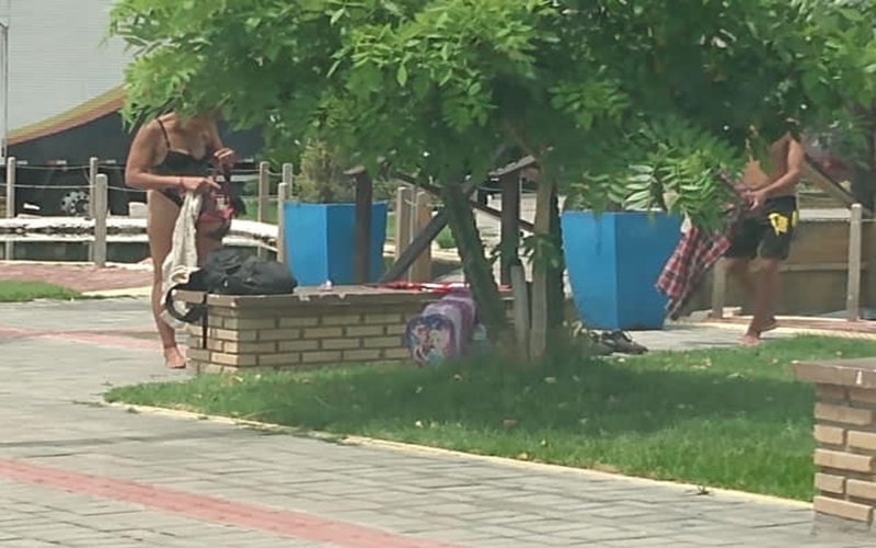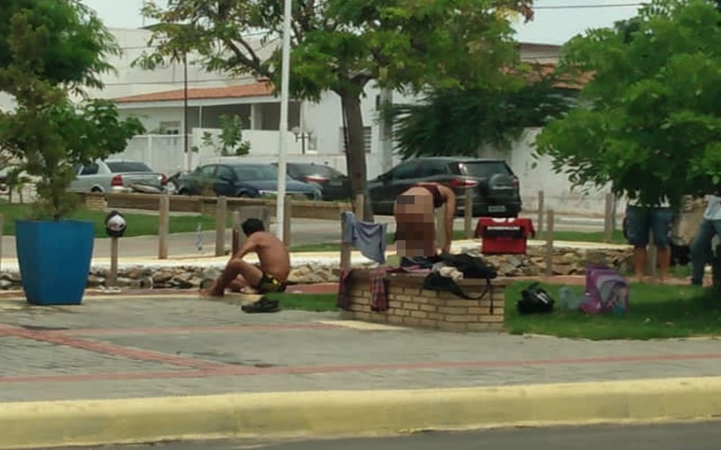 Em plena luz do dia, casal é flagrado tomando banho de trajes íntimos em praça pública de Sousa