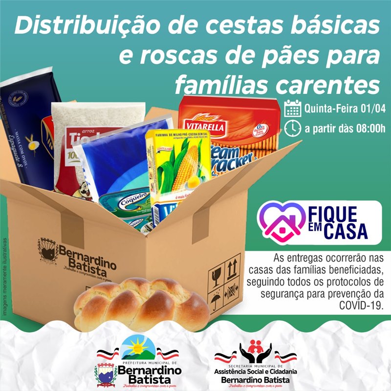 A Secretaria de Assistência Social e Cidadania da Prefeitura de Bernardino Batista, município da região de Cajazeiras, no Sertão paraibano, entregou nesta quinta-feira (1º), cerca de 500 cestas básicas para famílias carentes cadastradas em programas sociais nas zonas urbana e rural.