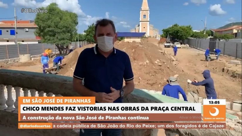 O prefeito de São José de Piranhas, na região de Cajazeiras, Chico Mendes (Cidadania), postou um vídeo em suas redes sociais e falou do andamento dos trabalhos da retomada das obras da construção da Praça Central de São José de Piranhas.