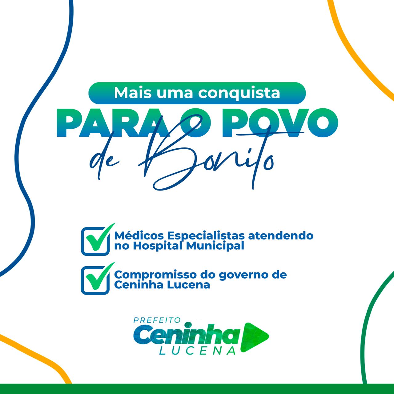 O prefeito de Bonito de Santa Fé, Ceninha Lucena (Podemos), anunciou a contratação de novos médicos especialistas para atender a população no município. Os médicos foram contratados após uma chamada pública onde as empresas se cadastraram.