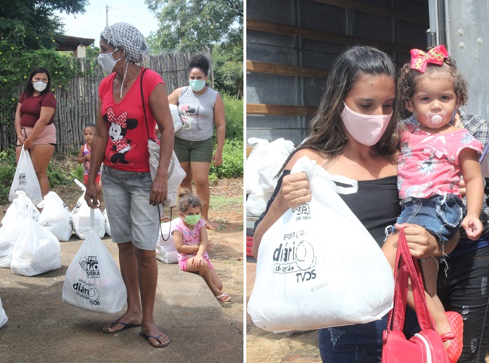 A equipe do Sistema Diário e os colaboradores visitaram os assentamentos Frei Damião e Santo Antônio, onde foram entregues mais de 70 cestas básicas, quase duas toneladas de alimentos. Somando ao primeiro dia, a campanha já ultrapassa mais de quatro toneladas de alimentos distribuídos.