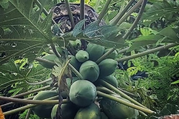 De acordo com os bombeiros, a cobra estava sobre a copa de um mamoeiro e eles tiveram que utilizar técnicas de captura e manuseio de animais selvagens, e conseguiram retirar o animal e soltar em seu habitat.