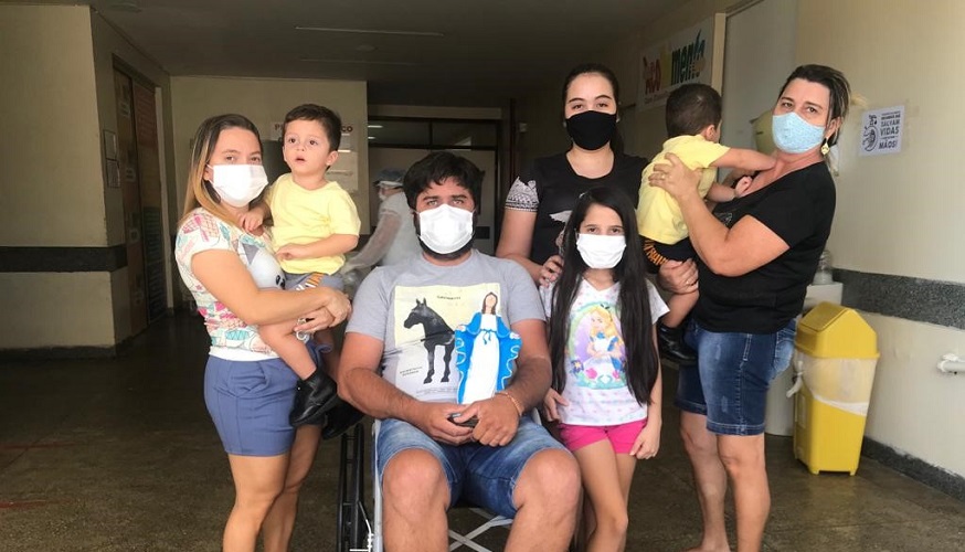 Entre os familiares estavam sua esposa, seus dois filhos gêmeos e sua mãe, que levou uma imagem de Nossa Senhora das Graças. Na saída, o jovem agradeceu a Deus e aos profissionais de saúde do HRC.