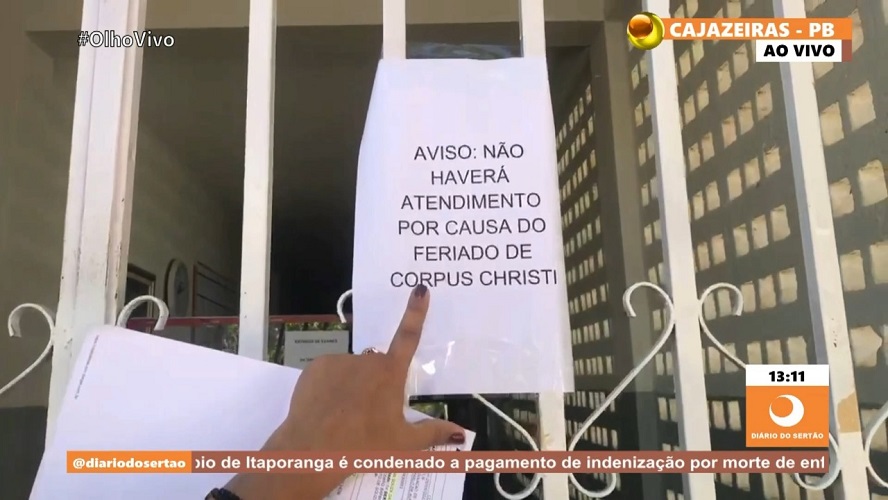 Dona Maria tinha um exame de radiografia marcado para às 13h desta quinta, mas quando chegou à Policlínica, se deparou com um aviso de que não há atendimento por causa do feriado de Corpus Christi.