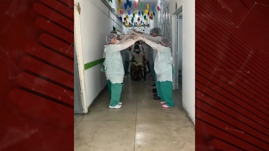 Sete pacientes da enfermaria e dois da UTI deixaram o hospital sob clima de quadrilha junina improvisada pelos profissionais de saúde