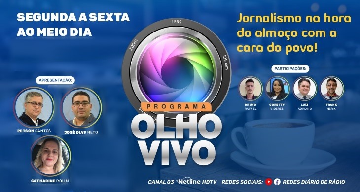 “Com as emissoras de rádios, a TV a Cabo e o IPTV, hoje conseguimos chegar a mais de 300 cidades nos estados da Paraíba, Ceará, Piauí, Rio Grande do Norte, São Paulo e Bahia. E não para por aí, nos próximos dias estaremos anunciando mais uma emissora de rádio que fortalecerá ainda mais esse de comunicação, que informa e ajuda as pessoas, pois essa é marca do OLHO VIVO da Rede Diário de Rádios e TV”, destacou, Petson Santos, diretor administrativo do Sistema Diário de Comunicação e apresentador do programa Olho Vivo.