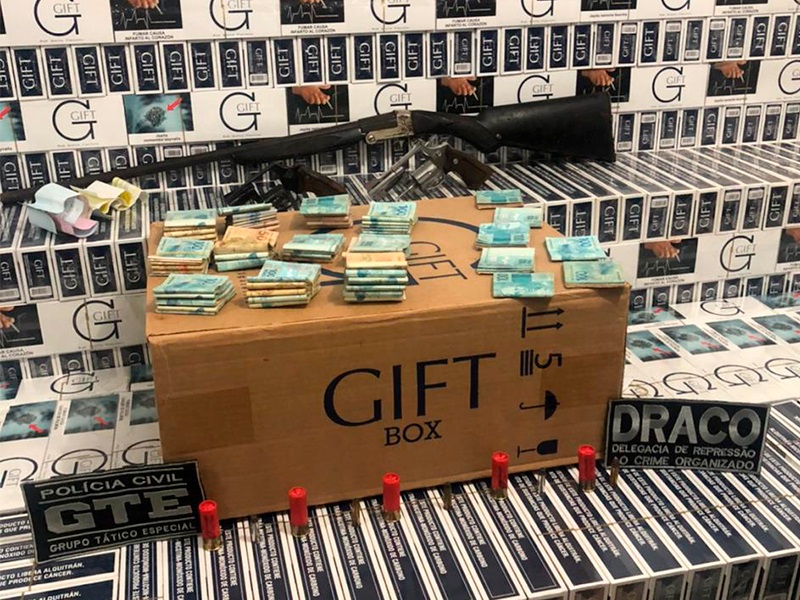 A Polícia Civil da Paraíba apreendeu na noite dessa sexta-feira (16) quase 700 mil unidades de cigarros contrabandeados, duas espingardas, dois revólveres e R$ 124.255,00, entre dinheiro e talões de cheques. A ação foi realizada pelas equipes da Delegacia de Repressão ao Crime Organizado (DRACO) e o Grupo Tático Especial (GTE) de Patos.