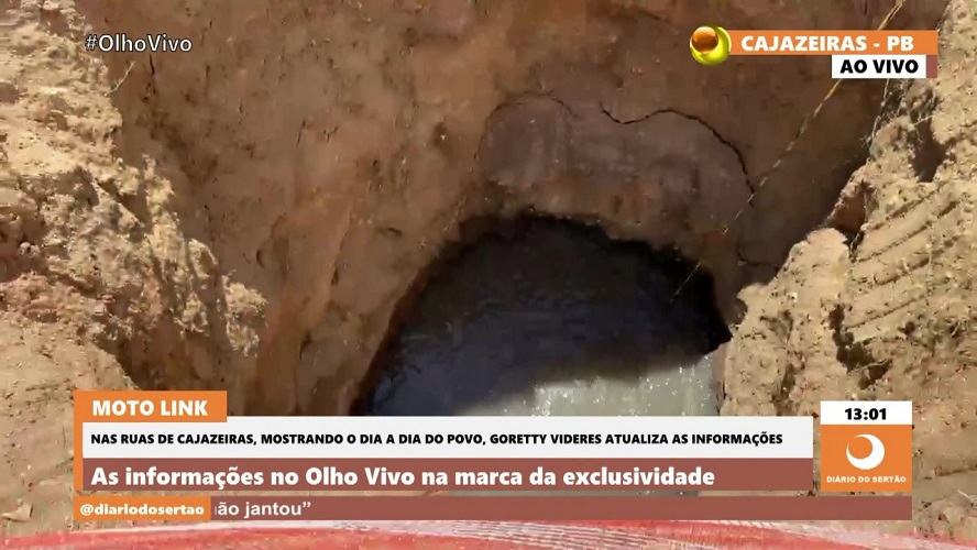 A Cagepa disse ao Diário do Sertão que a vala aberta trata-se de um problema de obstrução na tubulação responsável pela coleta e transporte do esgoto, que tem 500 mm de diâmetro, e que a conclusão dos serviços acontecerá após a chegada do material para substituição da tubulação danificada. Mas não nos foi passada a data prevista para a chegada do material.