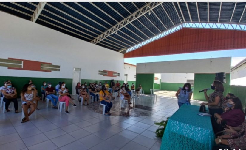 Estiveram reunidos as professoras da Faculdade Santa Maria, Maria Iranilda Silva Magalhães e Mônica Maria de Souza Ferreira, os gestores municipais representados pela secretária de Educação Fabiana Inácio e a secretária de Saúde Neuma Cavalcanti, além de outros gestores escolares e Agentes Comunitários de Saúde.