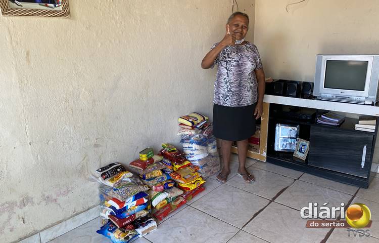 Nesta quarta-feira (06), a equipe do programa Olho Vivo da TV Diário do Sertão, mostrou a alegria da dona de casa Cleonice Pereira, após a idosa receber contribuições financeiras e alimentação, diante da repercussão de um apelo que a mesma fez no quadro ‘Rota da Fome’, em sua casa na rua Joaquim Dantas Cartaxo, bairro dos Tecedores, zona sul de Cajazeiras.