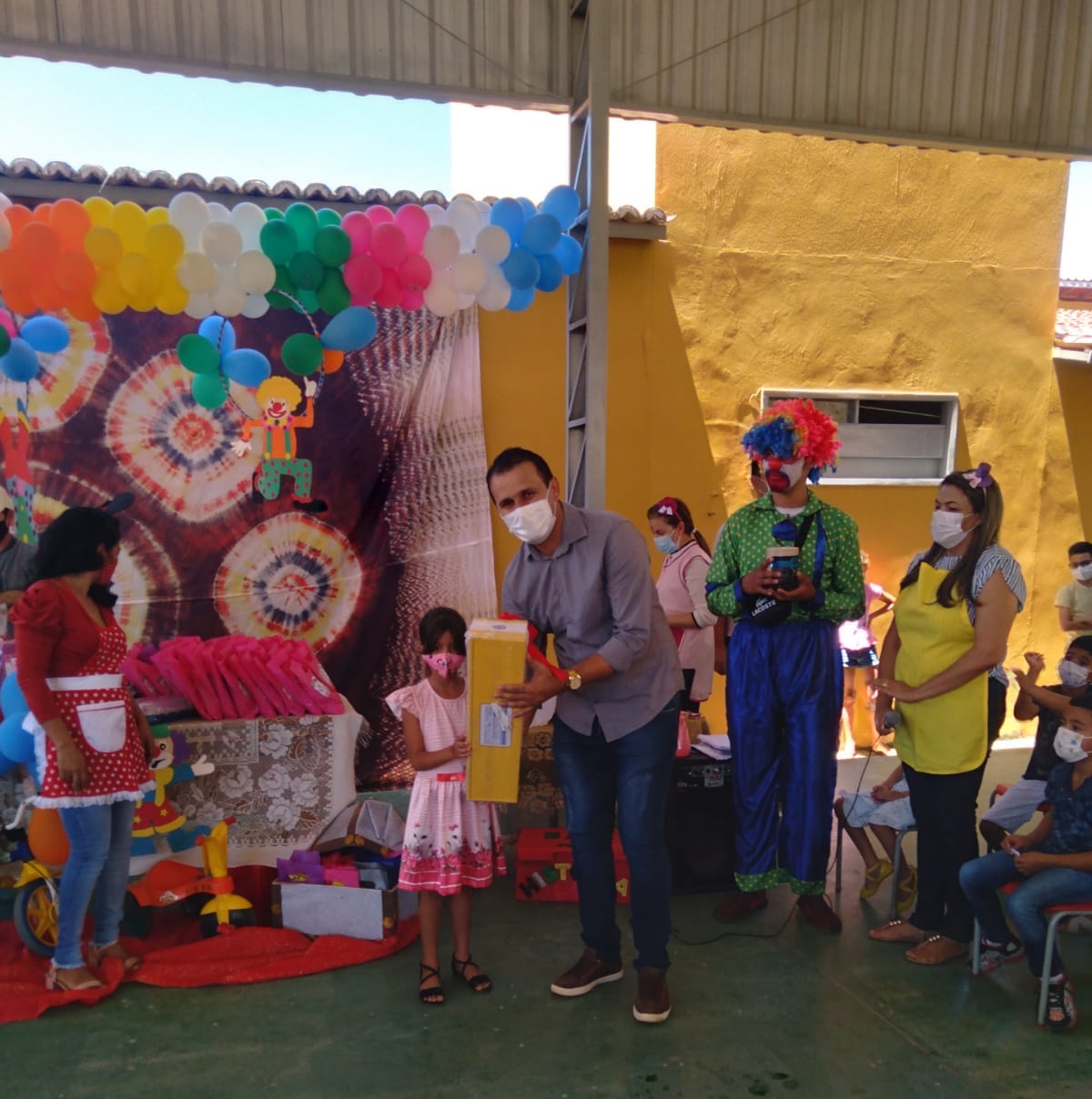 Aconteceu a distribuição de doces para as crianças, brincadeiras, sorteio de brindes, entrega de lembrancinhas para as crianças e muita diversão. As festividades ocorreram em cinco pontos da cidade, seguindo todos os protocolos de segurança contra a Covid-19. A Secretaria de Educação ressalta que os profissionais da educação do município tomaram as duas doses da vacina contra o coronavírus.