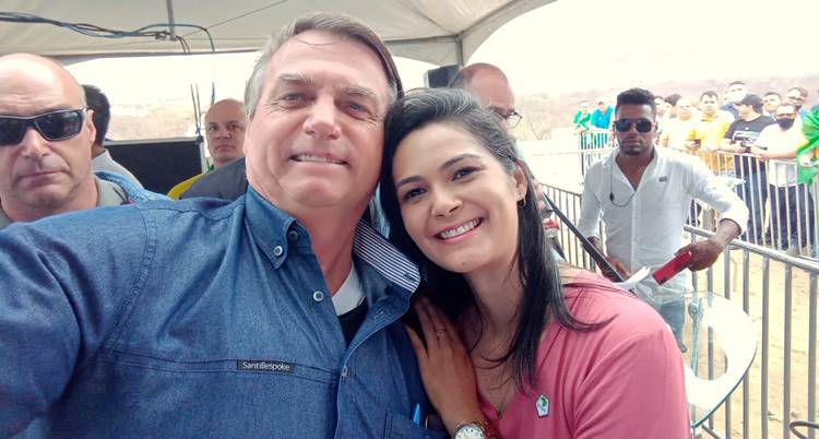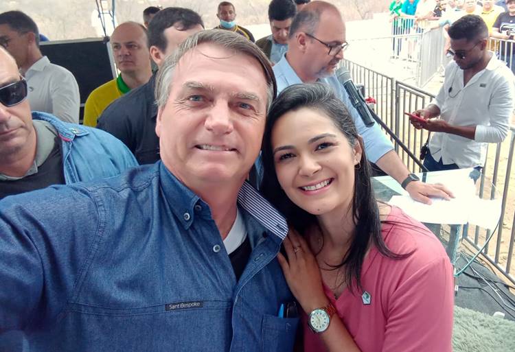 A contadora cajazeirense Paula Naiane se destacou nesta quinta-feira (21), durante a visita do presidente Jair Bolsonaro (sem partido) em São José de Piranhas, na inauguração do último trecho do canal do Eixo Norte do Projeto de Integração do São Francisco. Integrante do Movimento B38, que reúne grupo de apoiadores do presidente em Cajazeiras, Naiane se surpreendeu nos últimos dias, quando soube que a agenda presidencial coincidiria com a data do seu aniversário: 21 de outubro. A partir de então tentou criar formas de celebrar o aniversário e ao mesmo tempo prestigiar Bolsonaro.