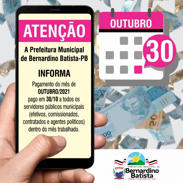 Salário de outubro já está na conta de todos os servidores do município de Bernardino Batista