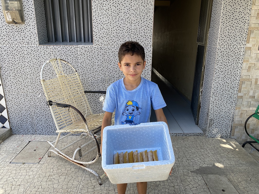 Davi Lucas, de 8 anos de idade, vende dindin em Cajazeiras para tentar evitar que sua família seja despejada da casa onde mora por causa de aluguel atrasado
