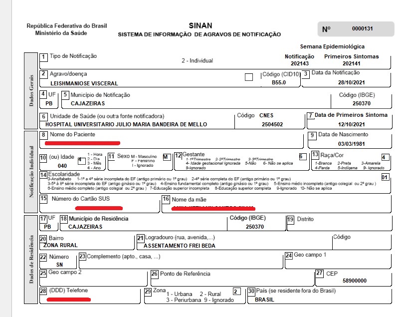 De acordo com dados do Sistema de Informação de Agravos de Notificação do Ministério da Saúde, ao qual teve acesso o Diário do Sertão, o caso foi registrado no dia 28/10/2021.