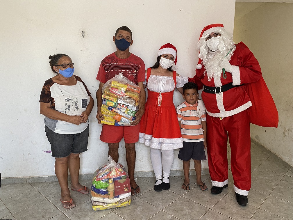 Também na tarde desta terça, a Mamãe Noel Maria Emilly e o Papai Noel Alan Lopes, que são funcionários do Supermercado Cajazeiras, fizeram festa com as crianças na Zona Sul. Mas a maior alegria foi o sorriso no rosto da família do pequena David, que recebeu a cesta de Natal.