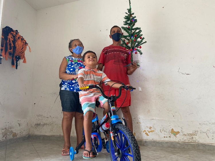 Nesta terça, a equipe do programa Olho Vivo foi até a residência de David, na Rua João Casemiro de Lira, Bairro das Capoeiras, onde o garotinho já estava se divertindo na sua bicicleta, ao lado da árvore de Natal.